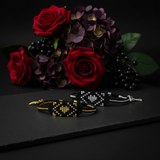 Set „Polnočné srdce Luny“ – ručne šitý korálkový šperk