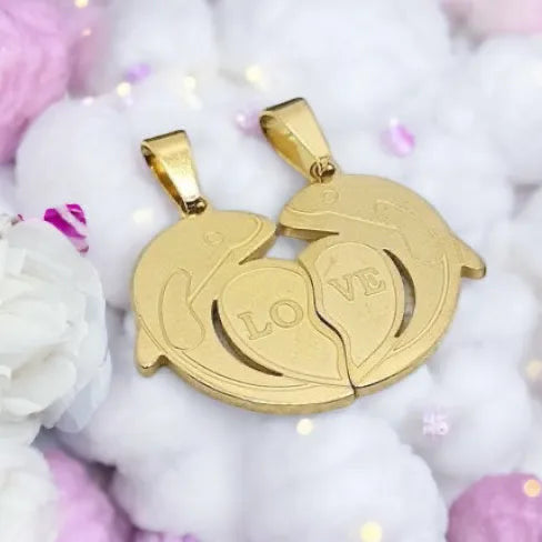 Dvojitý prívesok “Love” z chirurgickej ocele v zlatom prevedení prívesok delfín R005