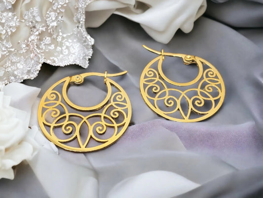 Elegantné Náušnice z Chirurgickej Ocele so Zdobeným Ornamentom v Zlatom Prevedení náušnice NA0053
