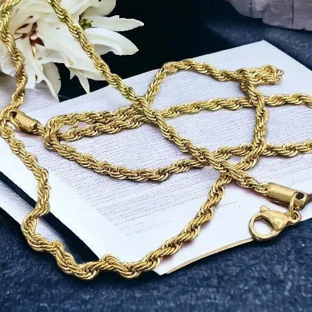 Elegantný Náhrdelník z Chirurgickej Ocele v Zlatom Prevedení náhrdelník Plait zlatý 0,5 cm R9