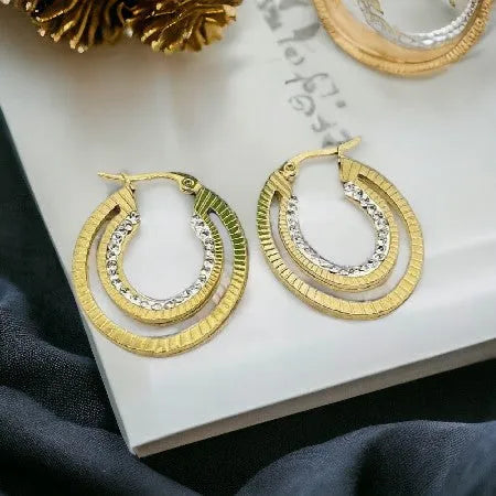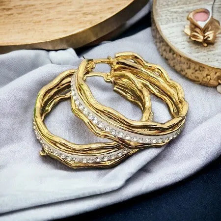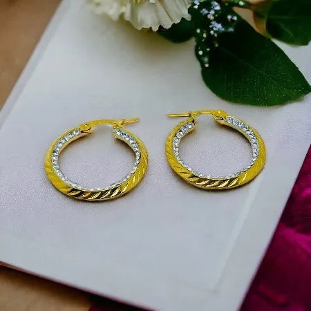 Zlaté náušnice z chirurgickej ocele – 2,5 cm, zdobené kamienkami náušnice 2,5 cm N0029