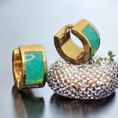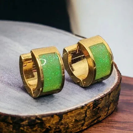 Zlaté náušnice z chirurgickej ocele – 1,2 cm, zdobené zeleným kamienkom náušnice zlaté SISI A14 21031307