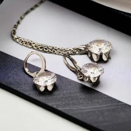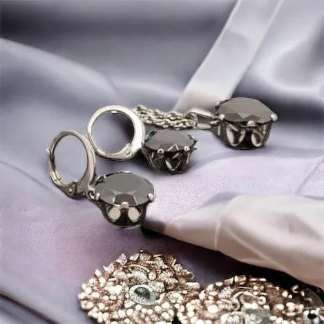 Strieborný set z chirurgickej ocele – náušnice a prívesok s čiernymi kamienkami set s čiernymi kamienkami v striebornom prevedení 1002329