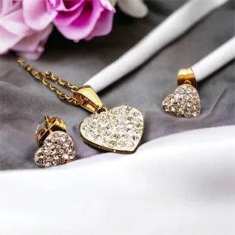 Zlatý set z chirurgickej ocele – náušnice a prívesok v tvare srdiečka set srdiečka so zirkónmi v zlatom prevedení 1002276