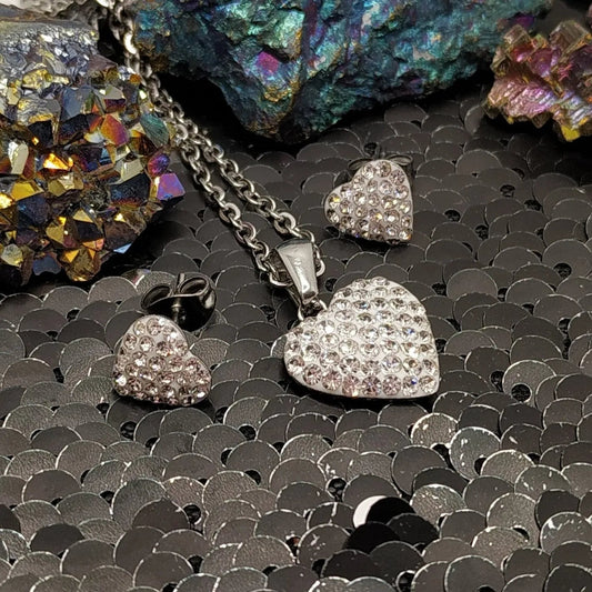 Strieborný set z chirurgickej ocele – náušnice a prívesok v tvare srdiečka set srdiečka so zirkónmi v striebornom prevedení 1002277