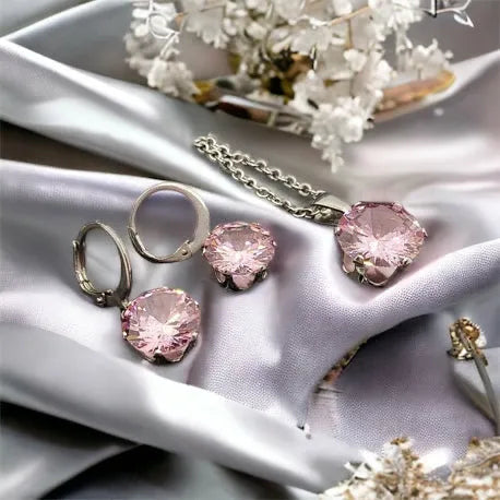 Strieborný set z chirurgickej ocele – náušnice a prívesok s ružovými kamienkami set s ružovými kamienkami v striebornom prevedení 1002328