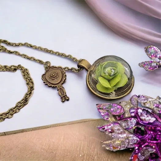 Prívesok s kvetinovým motívom – rozmery 3,6 x 2,8 cm, retiazka 87 cm, bižutéria bez niklu náhrdelník Rose Green 1001196