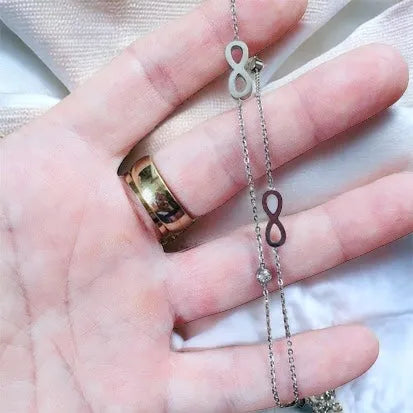 Strieborný náhrdelník z chirurgickej ocele – dĺžka 50 cm, zdobený osmičkami a kamienkami náhrdelník nekonečno a kamienkami strieborný 1000937
