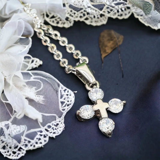 Strieborný prívesok krížik s brúsenými zirkónmi – chirurgická oceľ prívesok Cross strieborný 1000643
