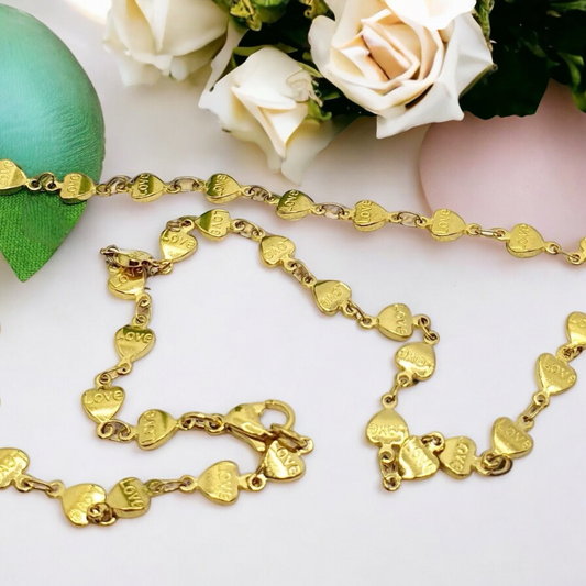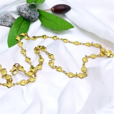 Zlatá retiazka zo srdiečok – Jemný šperk z chirurgickej ocele náhrdelník Srdiečka zlatý R6