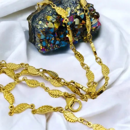 Zlatá retiazka z chirurgickej ocele – dĺžka 50 cm, hrúbka 0,4 cm náhrdelník Lístočky v zlatom prevedení 1001689