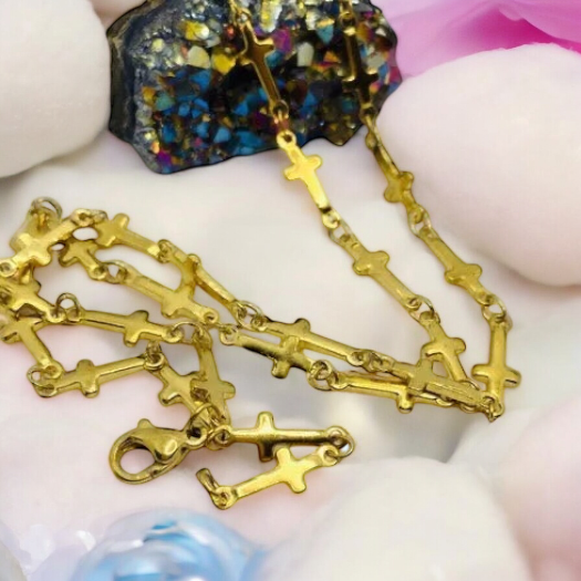 Zlatá retiazka z chirurgickej ocele s motívom krížikov náhrdelník Cross zlatý 1002053