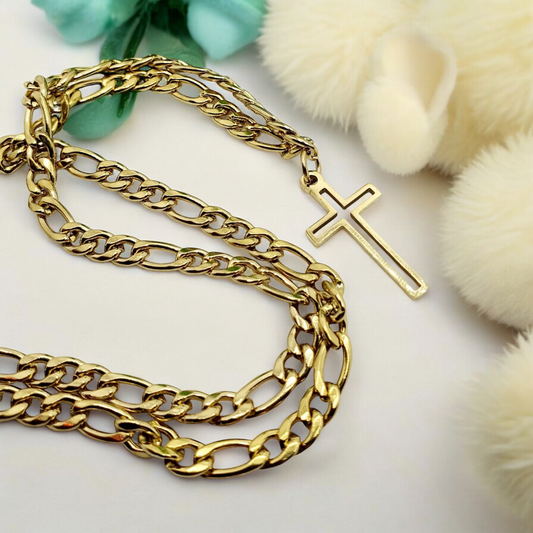 Zlatá retiazka z chirurgickej ocele s príveskom krížik náhrdelník Cross Figaro v zlatom prevedení 1003001