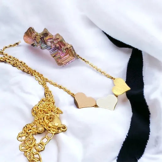 Náhrdelník so srdiečkami – Trojfarebná elegancia z chirurgickej ocele náhrdelník srdiečka na zlatej retiazke 1001960