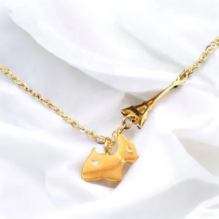 Zlatý náhrdelník z chirurgickej ocele s vežou a mačičkou – dĺžka 50 cm náhrdelník s vežou a mačičkou 1001399