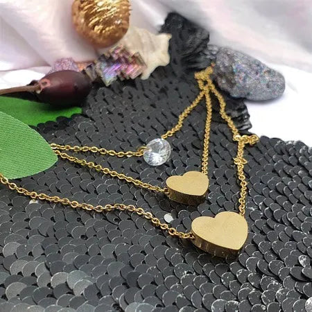 Zlatý náhrdelník z chirurgickej ocele s dvoma srdiečkami a zirkónom – trojvrstvový dizajn náhrdelník srdiečka a zirkón v zlatom 1001319