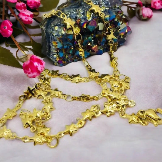 Zlatá retiazka s hviezdami – Chirurgická oceľ, dĺžka 50 cm náhrdelník Star v zlatom prevedení 1002082