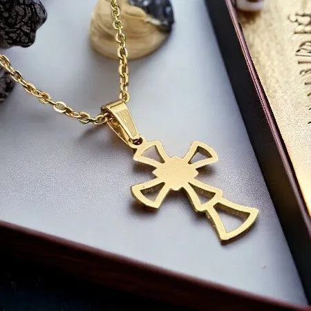 Zlatý prívesok v tvare kríža z chirurgickej ocele prívesok vyrezávaný krížik R0001