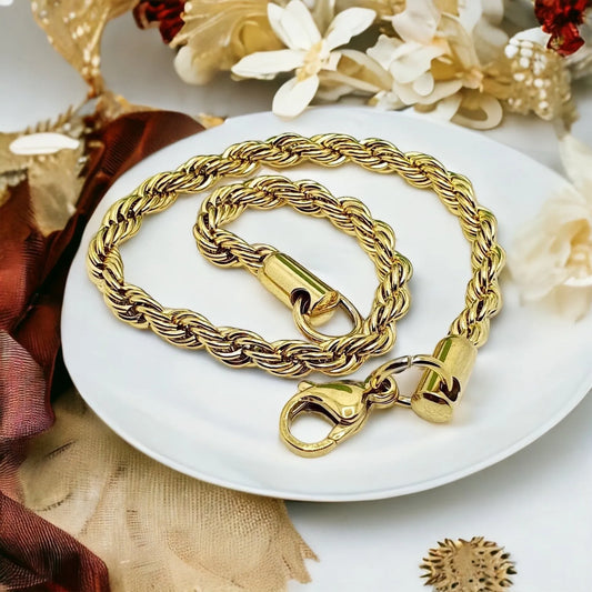 Zlatý náramok z chirurgickej ocele – 22 cm, hrúbka 0,4 cm náramok Plait zlatý N001