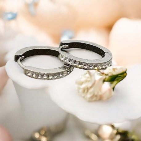 Strieborné oceľové náušnice s kamienkami náušnice kruhy vykladané kamienkami v striebornom 1000622