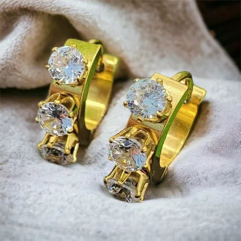 Zlaté náušnice s tromi bielymi zirkónmi z chirurgickej ocele naušnice White 1000760