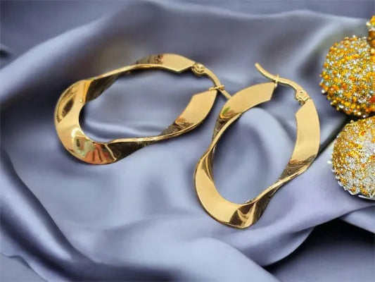 Zlaté oválne náušnice – chirurgická oceľ, elegantné dámske šperky | Harakka Jewls 1002078
