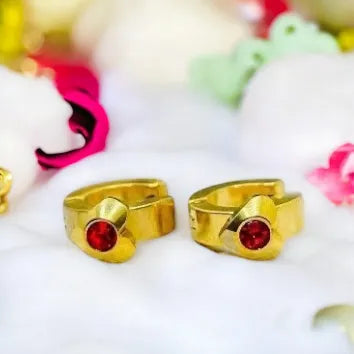 Zlaté náušnice srdiečka z chirurgickej ocele s červeným kamienkom detské náušnice s so srdiečkom s červeným kameňom zlaté N11