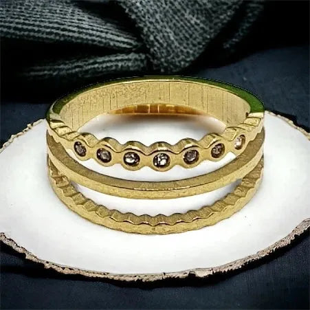Zlatý prsteň z chirurgickej ocele so zdobením kamienkami – Šírka 0,8 cm HAP1