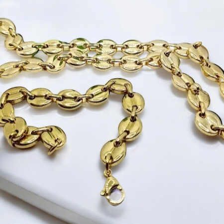 Golden King Set – chain and bracelet made of surgical steel in gold finish S1