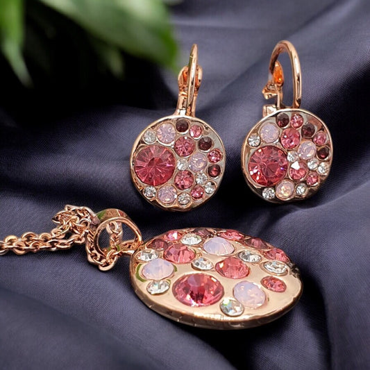 Set Zlatá Rosel – gold pendant and earrings with bright pink stones 1000912