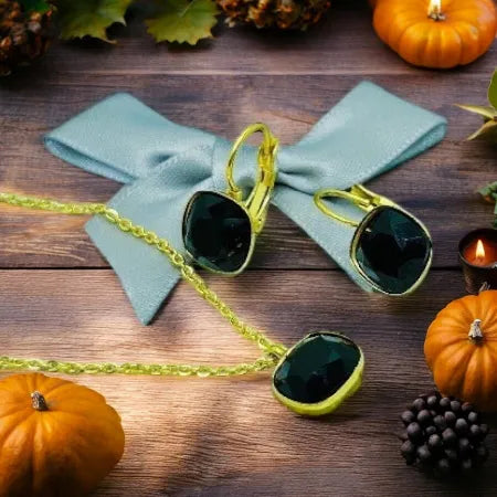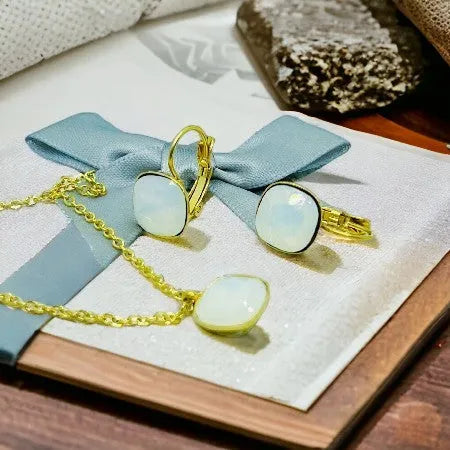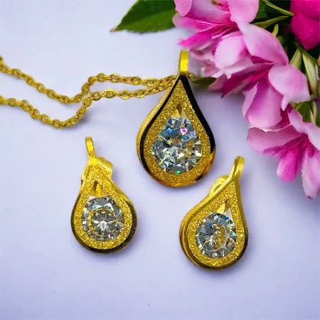 Tear of Golden Light Set – gold pendant and earrings with cut crystal S51