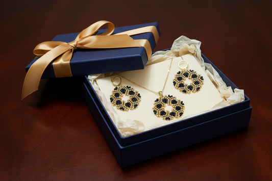 Čierno-zlatá elegancia — súprava náušníc a náhrdelníka z chirurgickej ocele