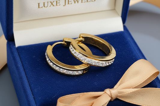 Regular price €8,90 EURRegular priceUnit price / perSale price €8,90 EURGold earrings "Golden hearts of love" - surgical steel with rhinestones