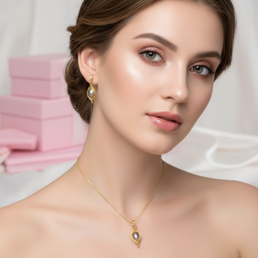 Mokošina night – Set with black pearl and gold protection – Code HS11 Slavic Jewelry