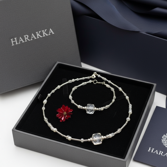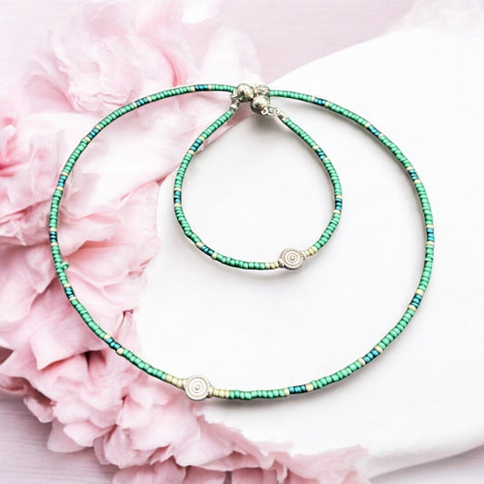 Set Svetlonoška – bracelet and necklace made of fine beads with silver decoration R1