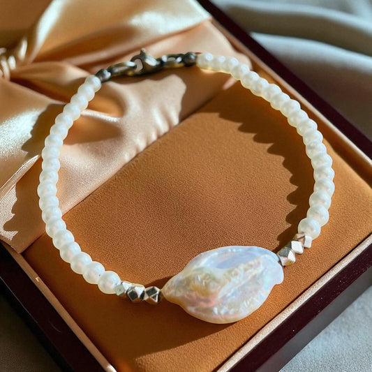 Pearl Lake Bracelet – freshwater pearl, mother-of-pearl beads and hematite NA1234