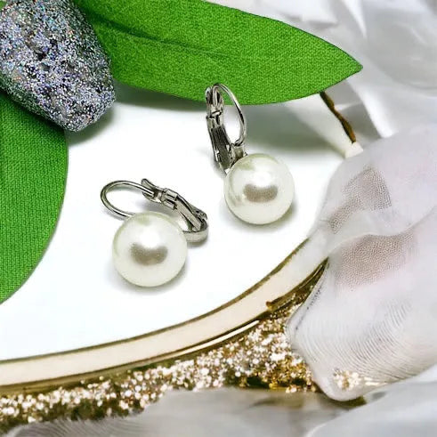 Surgical steel earrings - decorated with a pearl bead, pendant 1.4 cm NA11