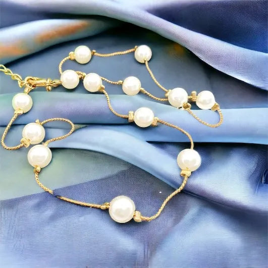 Necklace with pearls - length 51 cm, nickel-free jewelry Pearl necklace in gold version BI1