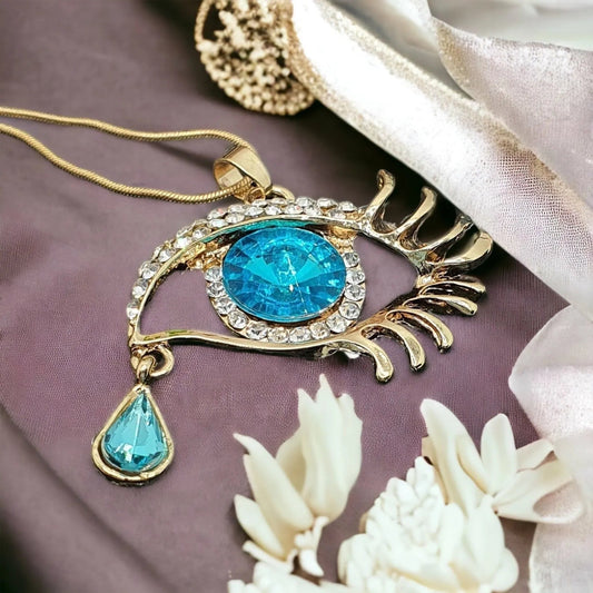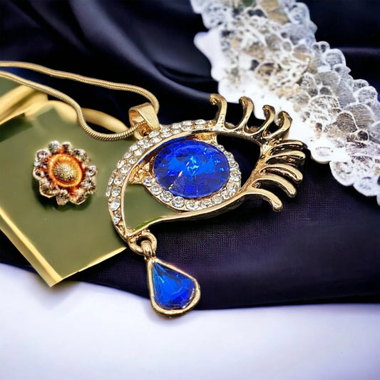 Pendant Eye with Turquoise Stone - Eye Catching Jewelry necklace Eye Dark BlueGold 1000919