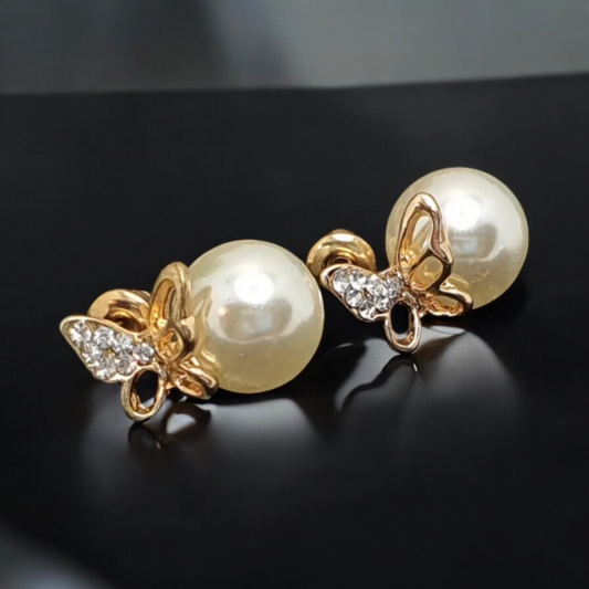 Elegant costume jewelry earrings - white pearl and butterfly decorated with rhinestones Butterfly earrings 1000743
