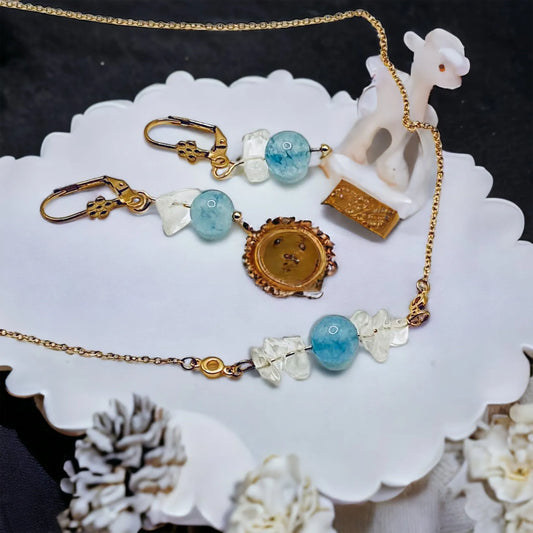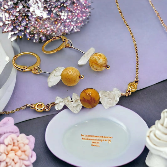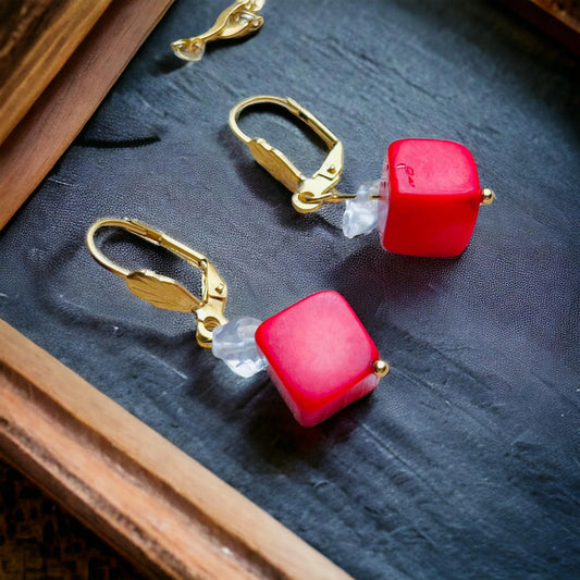 Gold dangling earrings with milky crystal - surgical steel, hypoallergenic version of the NA40 crystal earring