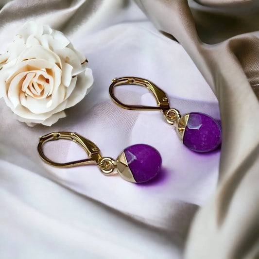 Amethyst earrings - gold design, surgical steel Amethyst earrings NA41