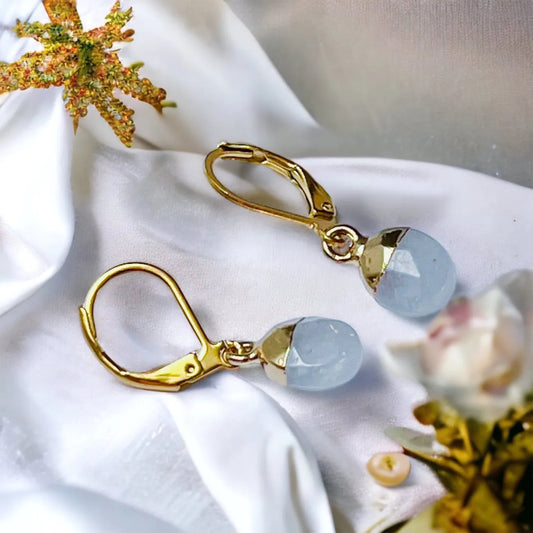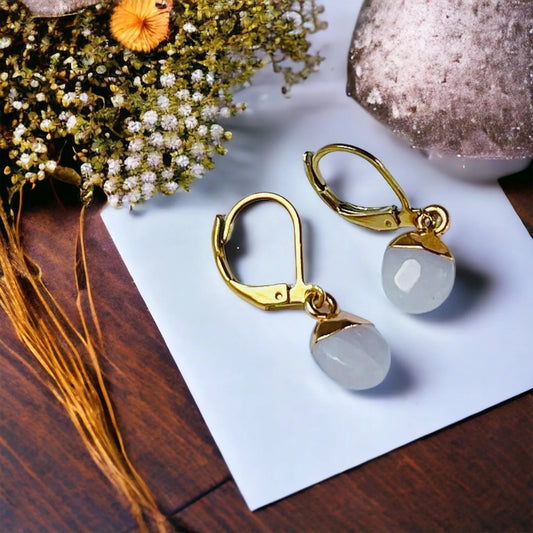 Gold dangling earrings with milky crystal - surgical steel, hypoallergenic version of the NA40 crystal earring