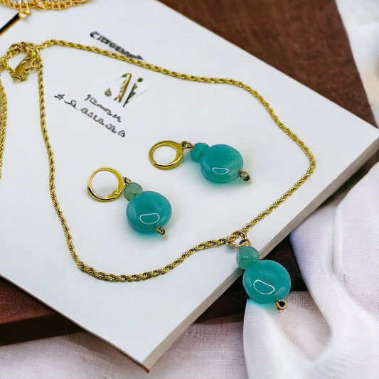 Aventurine pendant - Golden design with positive energy | Surgical steel chain of Avanturin R300 pendants