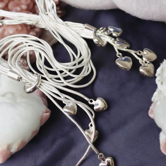 Set With Hearts – Delicate silver talisman of feelings, love and inner peace – Code 1000031 Silver necklace and bracelet with heart pendants – Harakka, Klenoty Slovanov