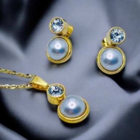 tGolden Pearl – earrings and pendant made of surgical steel with zircons and pearl 1001219
