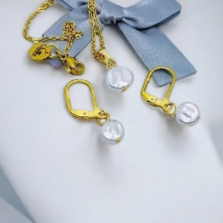 Pearl set S61 – Lely pearl beam Handmade set of earrings and chain made of beads and surgical steel in gold finish Collection: Jewels of the Slavs