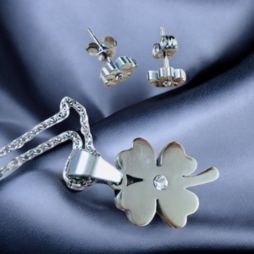 Four-leaf clover set - silver pendant and surgical steel earrings 1000500