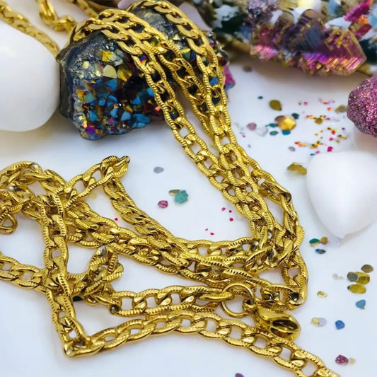 Romana gold set - Serrated surgical steel for elegance and nobility - chain and bracelet women's set in Romana in gold serrated S2