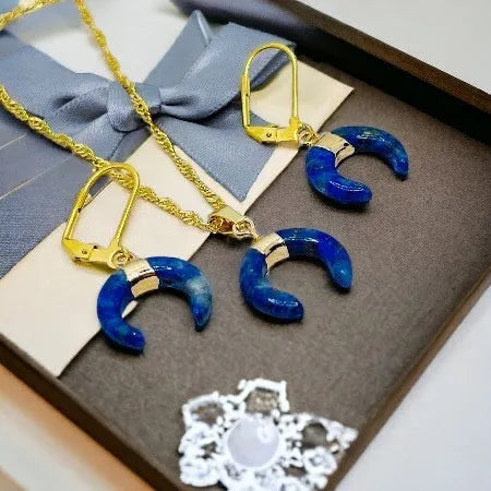 Set lazurite S0051 – Voice of Perun Earrings and pendant made of lapis lazuli on a twisted surgical steel chain in gold finish